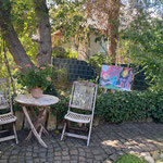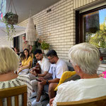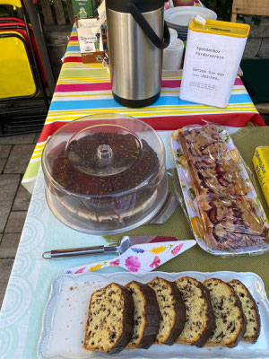Das war das Begegnungscafé zum Tag der offenen Gesellschaft  mit Kaffee, Kuchen und Kaltgetränken. Es gab Raum für Begegnung und Austausch, von 10 - 13 Uhr.  - Das Wetter war durchwachsen, trotzdem haben wir auch draußen aufgetischt  - denn am Tag der offenen Gesellschaft heißt es: Tische und Stühle raus!