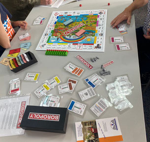Am Samstag, den 30. August von 11 - 12:30 Uhr war die Erfinderfamilie des nigelnagelneuen BOROPOLY in unserer Gemeindebücherei zu Gast 😀. Etliche Interessierte und auch die Presse waren dabei. Es wurde sogar eine kurze Runde gespielt. Ein Exemplar des Spiels ist nun auch in der Gemeindebücherei vorhanden. Wenn ihr das "Open-Source"-Spiel haben wollt, ist eure Mitarbeit gefragt: die meisten Dateien könnt ihr bei uns herunterladen, wie es genau geht, erfahrt ihr hier.